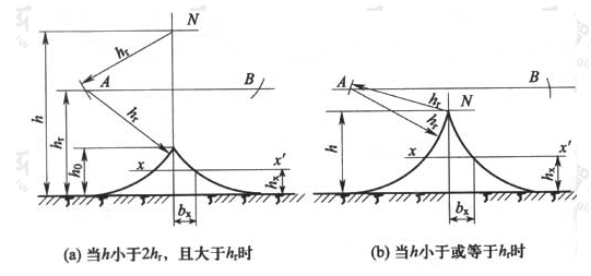 6)最小保護寬度bm位于hr高處,其值按下式計算:
